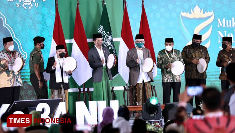 TIMES Blitar/Presiden Jokowi (Joko Widodo) membuka secara resmi Muktamar Ke-34 Nahdlatul Ulama di Pondok Pesantren Darussa’adah, Gunung Sugih, Lampung Tengah, Rabu (22/12/2021). (FOTO: Moh Ramli/TIMES Indonesia)