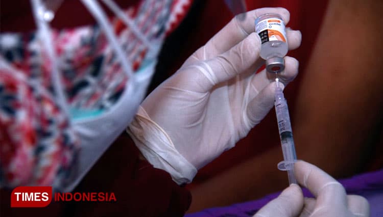 TIMES Blitar/Salah satu tenaga kesehatan saat mengisi dosis vaksin untuk disuntikkan. (FOTO: Adhitya Hendra/TIMES Indonesia)